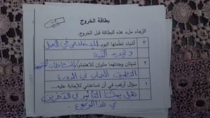 - The process of following up and intervening in group work, as the learners were divided into three groups and images were distributed to identify the differences between the images. I ensured their conclusion of a title for the image, such as “chaos” or something similar in meaning, and I also ensured their discussion of what chaos leads to in work and their conclusion that organization in the course of work is required, even at the level of religious courses.