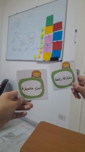 - Drawing a heart on the board and using the pull and push method with a balance between them, ensuring the participation of all learners without exception, and giving each of them the space to connect the heart drawing to their feelings and personal reality (Note: the goal was that sincerity is intention, and the intention resides in the heart).