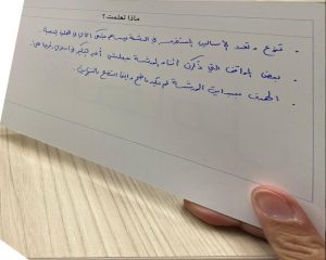 تعلمت الكثير أثناء الإعداد والتصميم لهذه الورشة، وبتوفيق من الله ثم بما تعلمناه كان مرور ساعة الورشة كدقائق علي كميسر وعلى المتعلمات.