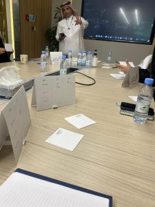 وبعد جولة من النقاشات تم الاتفاق أن يتم عمل ورشة مدتها ساعة يتم فيها عرض جزءا من آلية تطبيق الإطار وتم تحديد الموعد. تم التواصل معهم على أن الموضوع سيكون القيم في بيئة العمل ثم طلبت التعديل أن يكون الموضوع القيم والمهارات في بيئة العمل وتم اعتمادها.