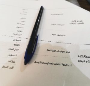 بعد الورشة كانت المهمة اكمال نموذج تصميم فكرة عمل تطوعي يسلم للجمعية عن طريق المدرسة وكذلك تسجيل ساعات التطوع في منصة العمل التطوعي لوزارة الموارد البشرية والتنمية الاجتماعية.